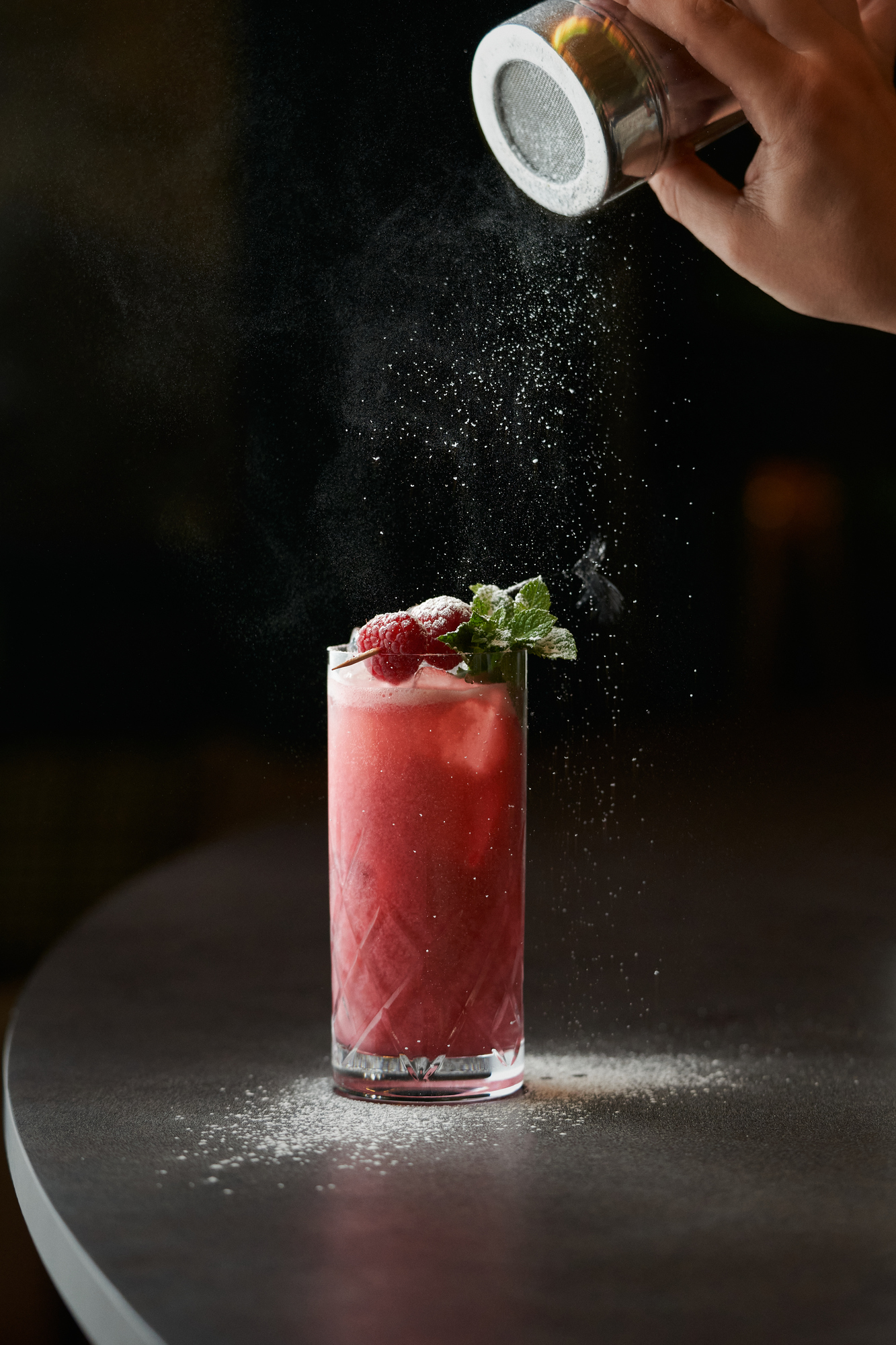 - Fifty Eight London Dry Gin – Briottett Crème De Peche – Jasmine Tea Syrup – Greek Yogurt – Raspberries – Lemon – Soda